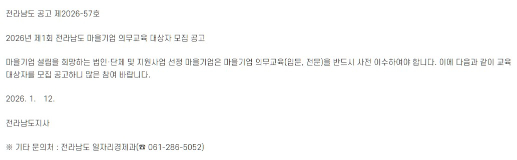 [~01.23.(수)]2026년 제1회 전라남도 마을기업 의무교육 개최