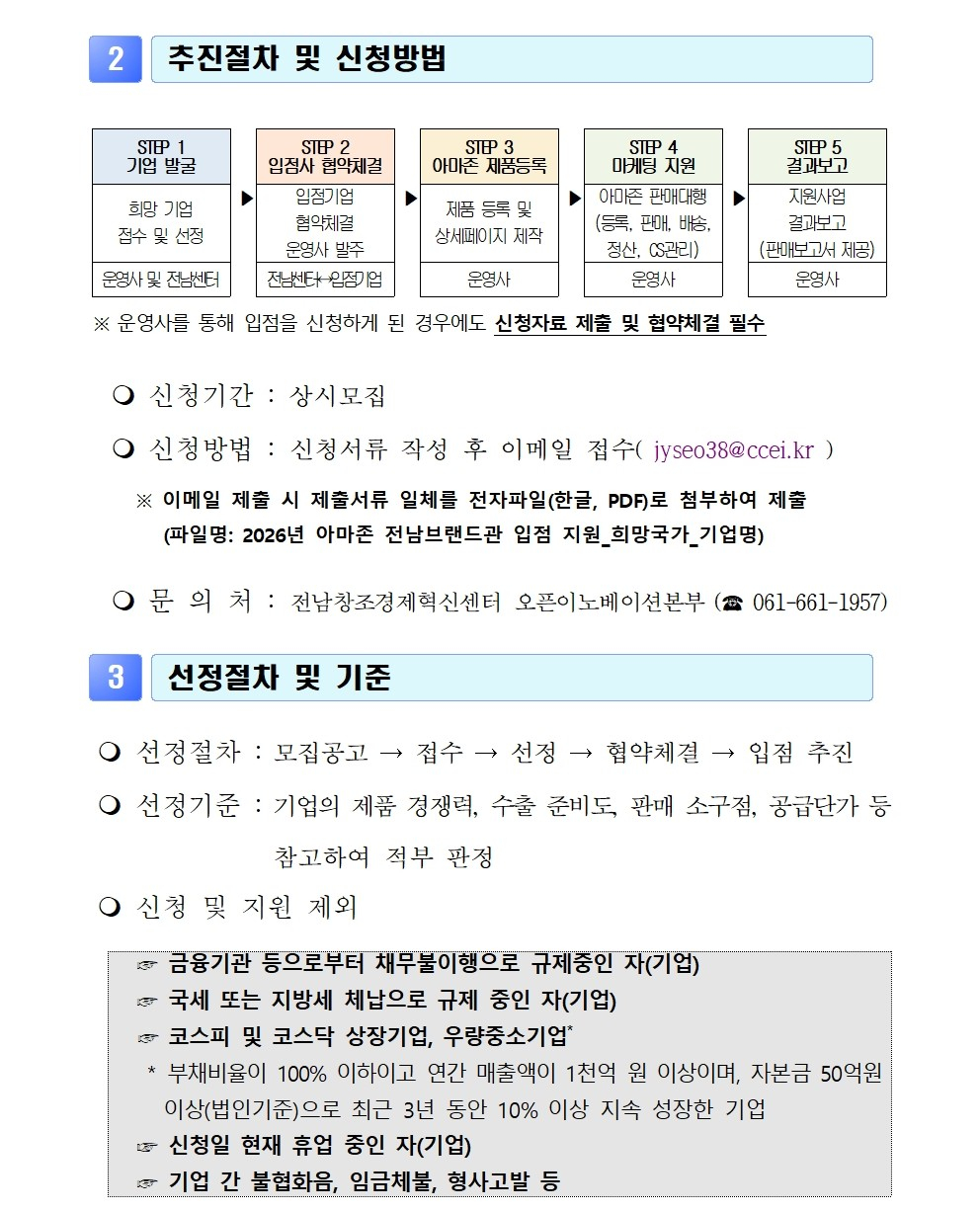 「2026년 아마존 전남브랜드관 입점」 참여기업 상시모집 공고
