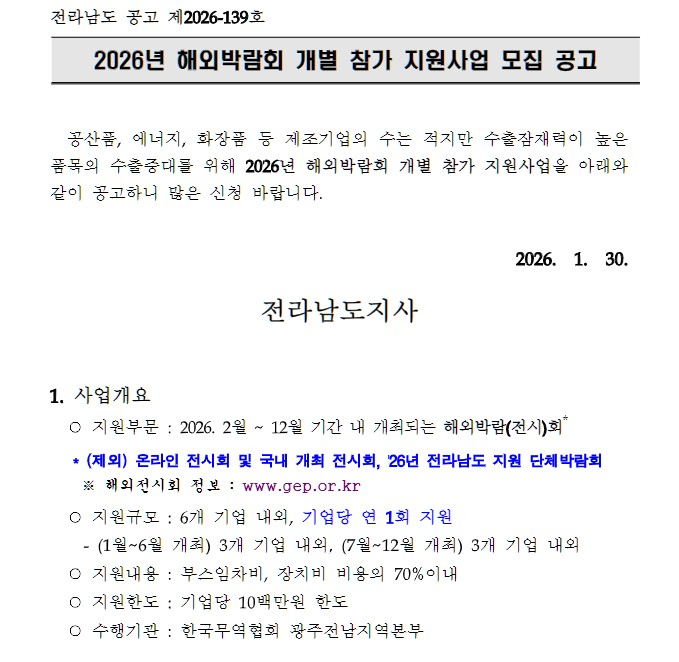 2026년 해외박람회 개별 참가 지원사업 모집 공고
