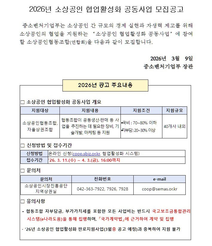 * 접수기간 : '26.3.11.(수) ~ 4.3.(금), 16:00 까지