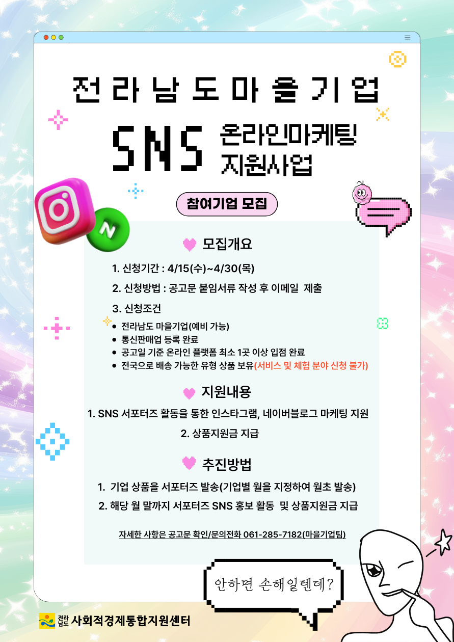[~04.30.(목)] 2026년 전라남도 마을기업 SNS 온라인 마케팅 지원사업 참여기업 모집공고