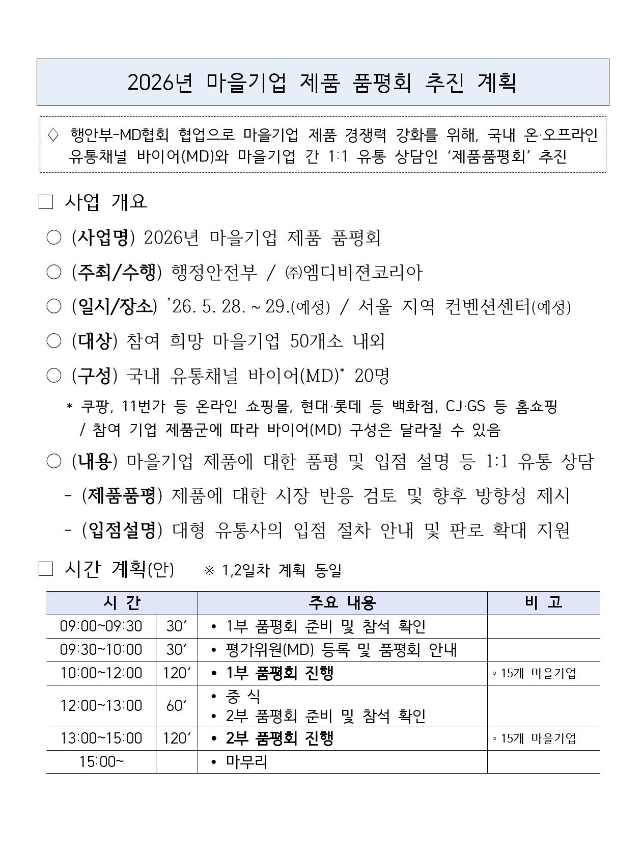 [~04.28.(화)] 2026년 마을기업 제품 품평회 참여기업 모집공고