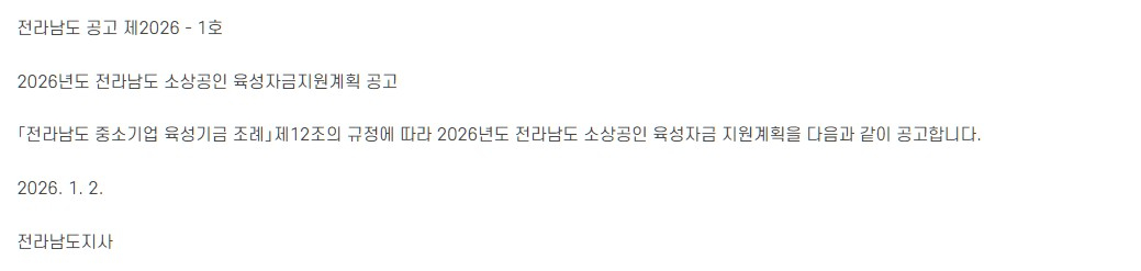 2026년도 전라남도 소상공인 육성자금지원계획 공고
